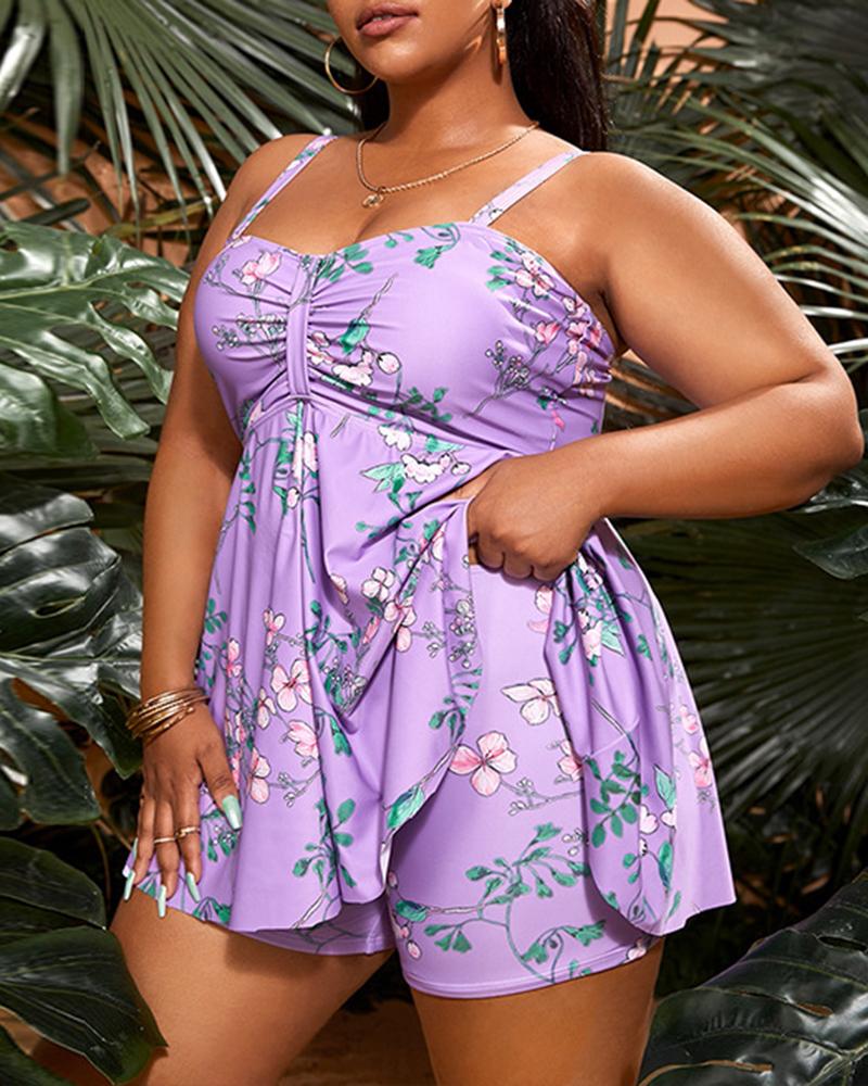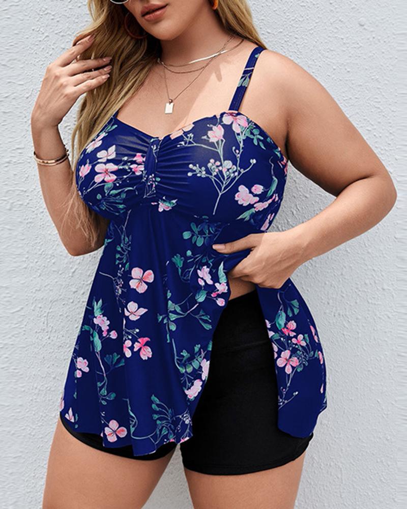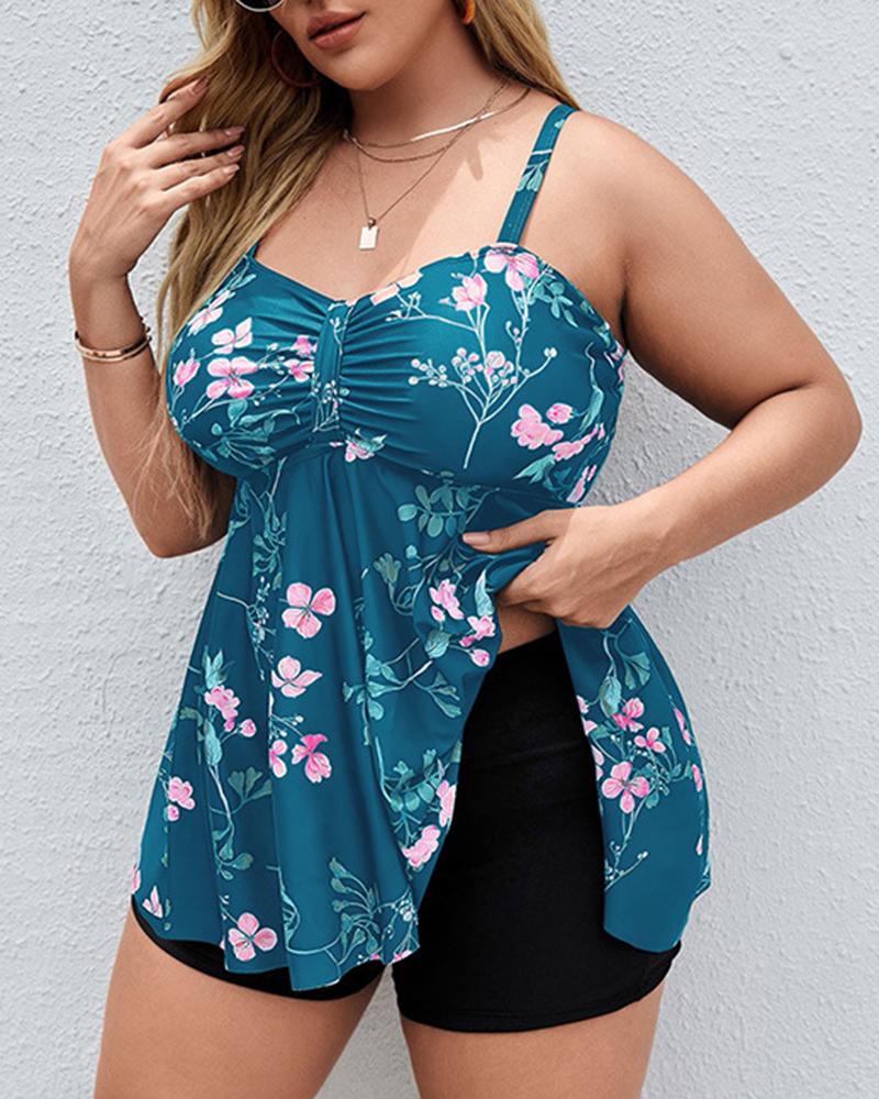 Plus Size Floral Print Ruched Tankini Set |
