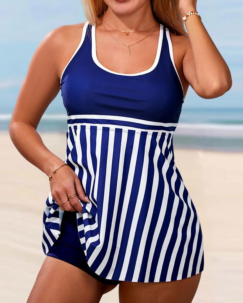 Fake Two-piece Striped Sleeveless Tankini Set |