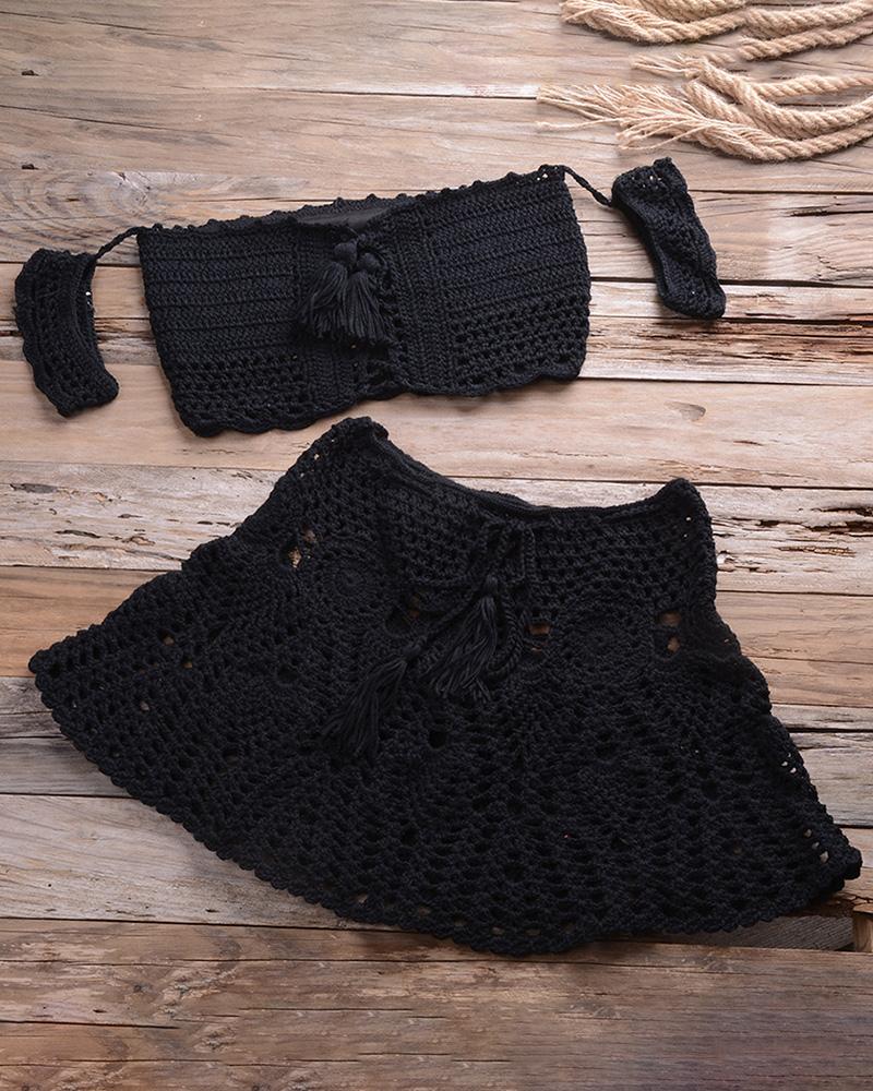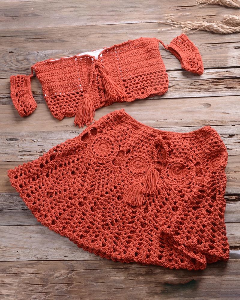 Hollow Out Tassel Design Crochet Tankini Set |