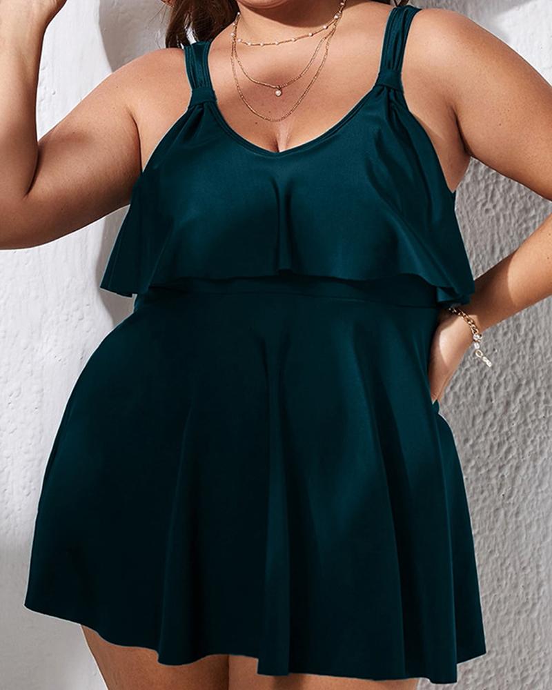 Plus Size Ruffle Hem V-Neck Tankini Set |